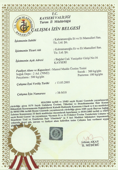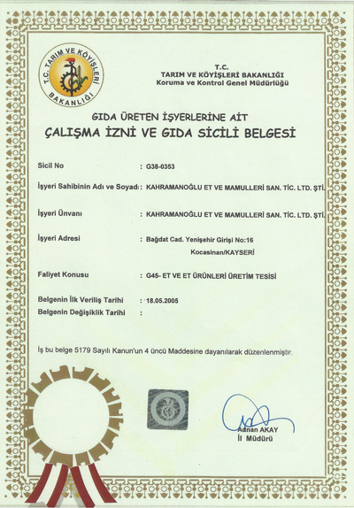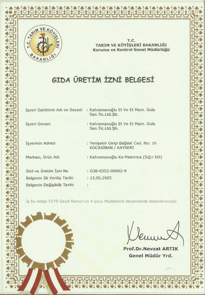 Gıda Üretim İzni Belgesi